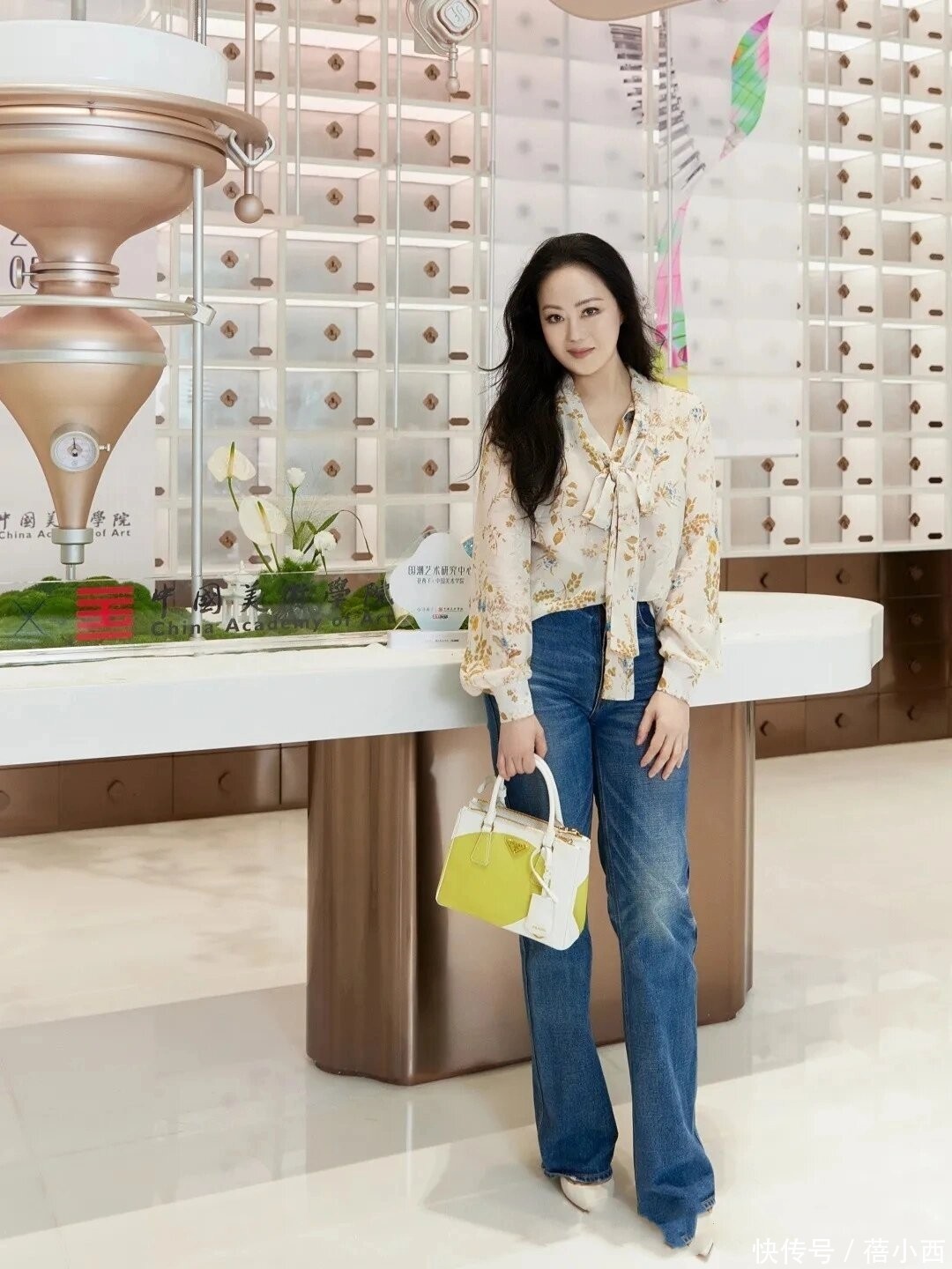 衬衫搭配牛仔裤平平无奇?看章小蕙就把碎花衬衫+牛仔裤穿出了新田地!轻细的碎花飘带衬衫自带尺度甘休气质,领口蝴蝶结添了几分娇俏,合作喇叭牛仔裤拉长腿部线条,疏漏又藏肉,舒截至和前锋感几乎拿合手得死死的。