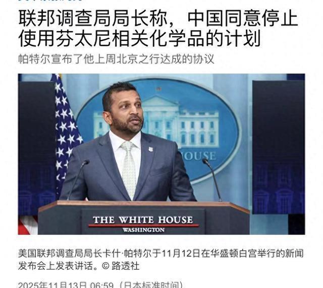 其实,特朗普不单是猛踩了高市早苗一脚,他还派出FBI局长看望中国,接下来要对华进一步裁减关税。好意思国当地时候11月12日,好意思国总统特朗普与FBI局长帕特尔真是同期选举,中好意思两国就芬太尼问题终走漏一致敬见!中方开心加强管控出产芬太尼的化学前体,协助好意思国打击芬太尼坐法。而帕塔尔也承认,他在上个星期奥妙看望了中国,这是10多年以来好意思国FBI局长初度看望中国,并与中国高档官员碰头!